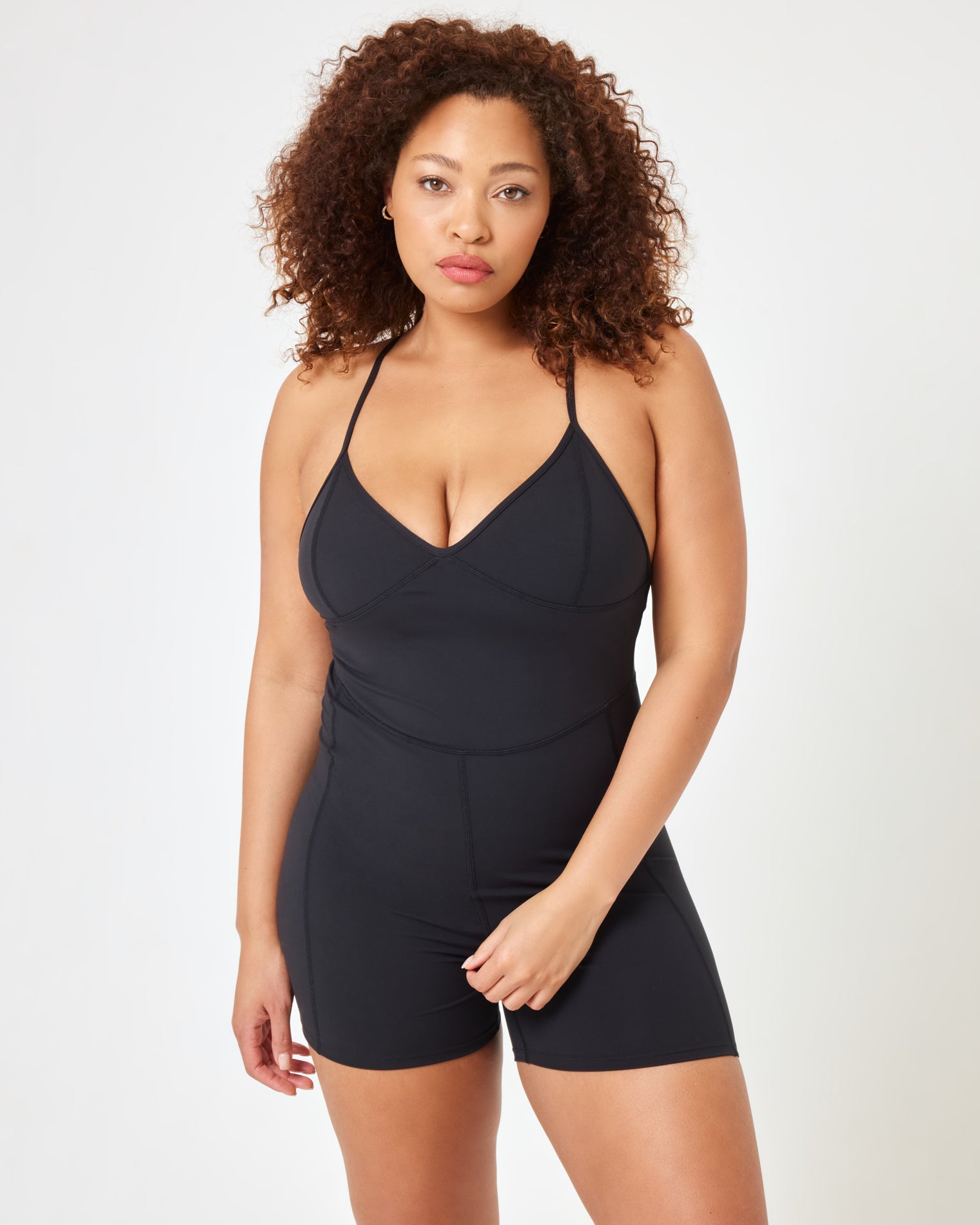 Show off during your next sweat sesh in the Owen Romper. This sassy little one-piece features bike shorts with a 5″ inseam, adjustable spaghetti straps and a criss-cross back. Throw on a denim jacket or a hoodie and you’ll be ready to roll.Active Romper 5″ Inseam Spaghetti Strap Crisscross Back Adjustable Straps Moisture wicking Antimicrobial UV Protection Odor resistant 70% Polyester, 30% Spandex Style # AOWNJU24