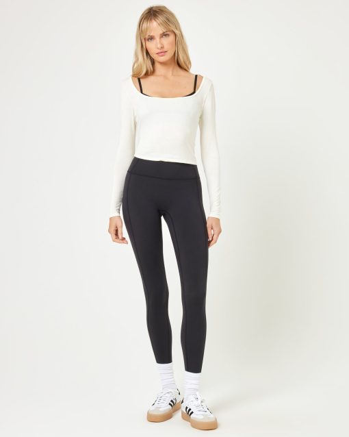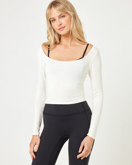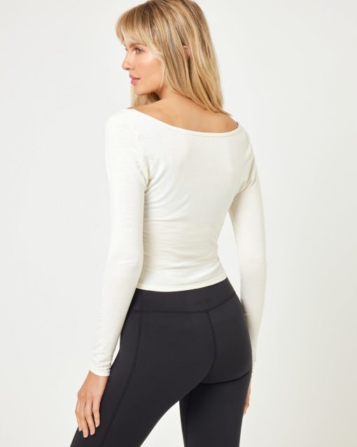 Silky soft + slightly sheer, the Prima Top is sure to be your new fave layering piece. This long sleeve tee has a scoop neckline and it’s tissue-soft to the touch. Wear it over your favorite active set for a street ready look. Long Sleeve Wide Scoop Neckline Layering Tee 48%Cotton/47%Modal/5%Spandex Style # APRMTP24