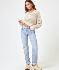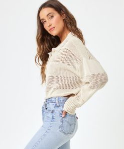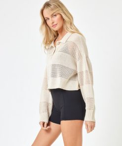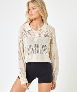 The Rugby Sweater is as versatile as it gets. Throw it on over your bikini or pair it with pants for a pulled-together vibe. This crochet paneled pullover has a collar, 1/4 button down and ribbed cuffs at the sleeves. It’s now available in the most beautiful, neutral shade of bone. Collared Long Sleeve Crochet Paneling Quarter Button Down 100% Cotton Style # ARUGSW24