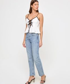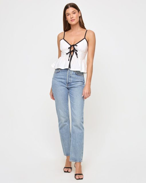 We’re totally loving the peplum trend and the Agnes Top is doing everything right. This crop tank shows off with adjustable spaghetti straps, a smoked back and the sweetest set of ties in the front that show a little pop of skin. Spaghetti StrapAdjustable StrapsSmocked BackPeplumTies in Front XS-XL 100% Cotton