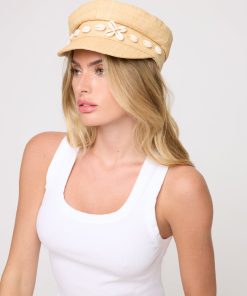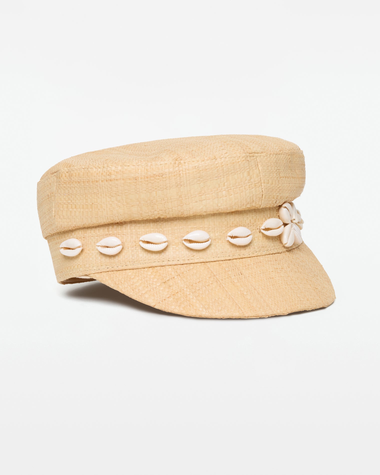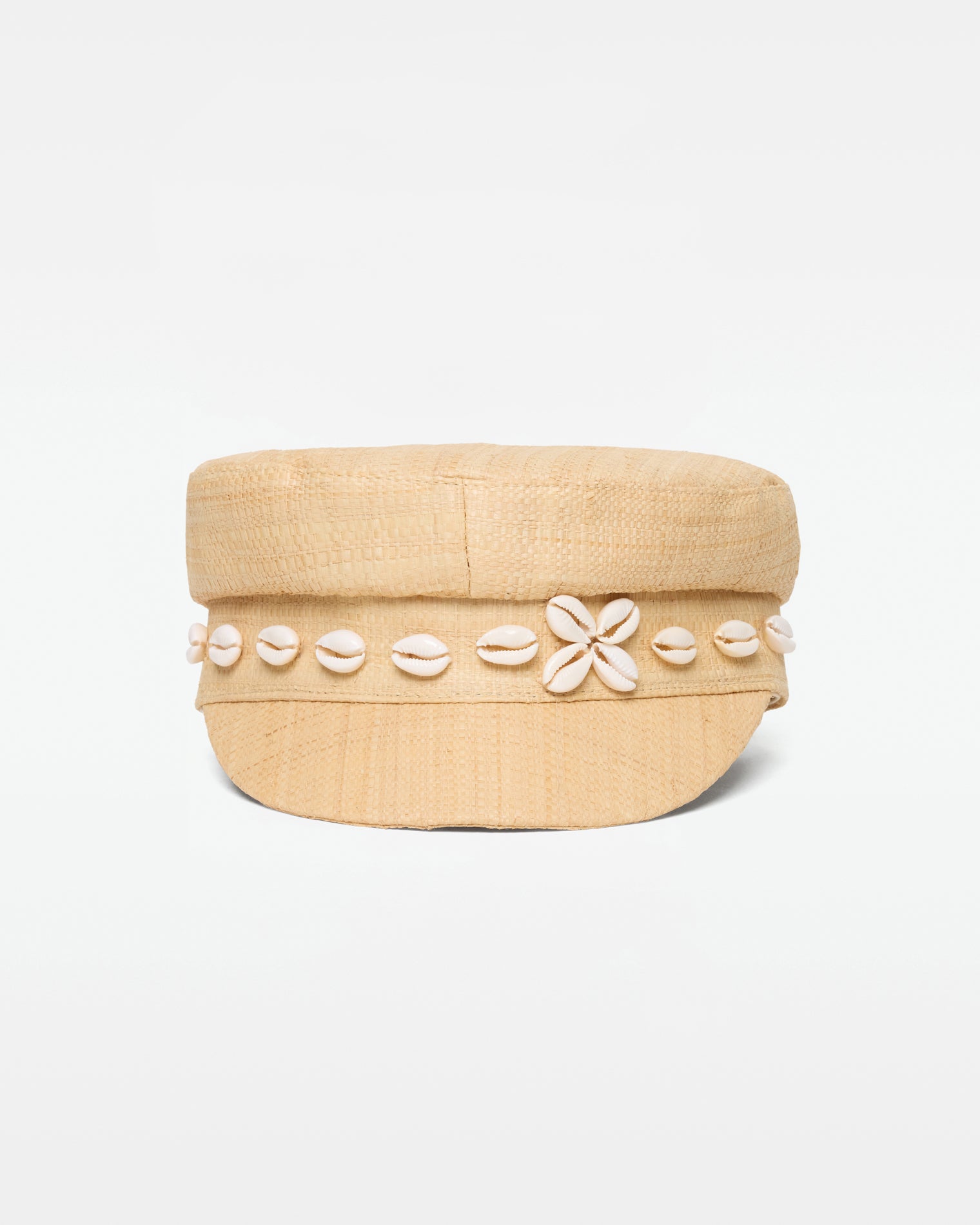 We love a comeback trend and this flat cap (aka newsboy or paperboy hat) is having a moment. The Alfama Hat is doing the most with a woven fabrication and whimsical seashell appliques that evoke all the coastal vibes and ocean aesthetic. Shell appliques Paperboy cap One Size 100% Paper Style # LSALF25