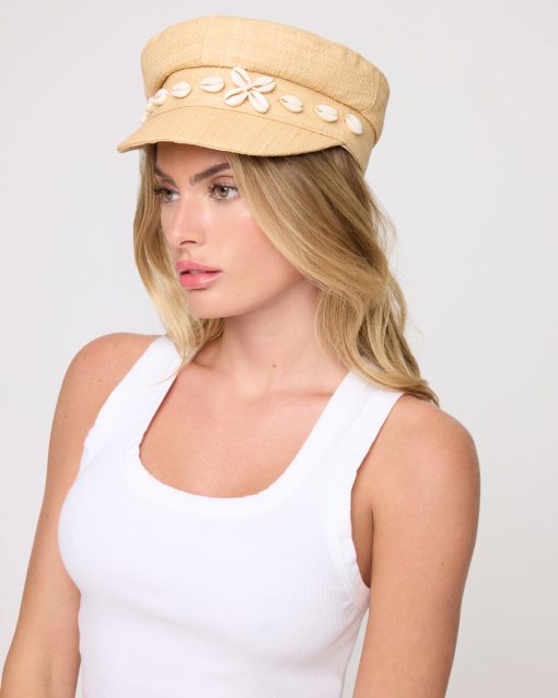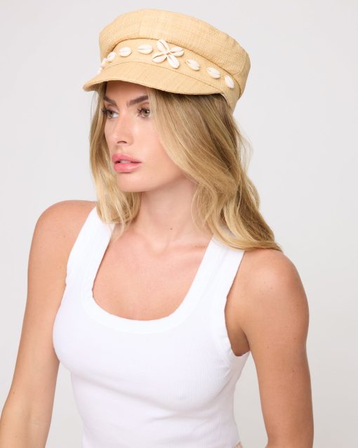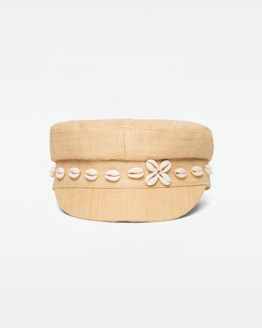 We love a comeback trend and this flat cap (aka newsboy or paperboy hat) is having a moment. The Alfama Hat is doing the most with a woven fabrication and whimsical seashell appliques that evoke all the coastal vibes and ocean aesthetic. Shell appliques Paperboy cap One Size 100% Paper Style # LSALF25