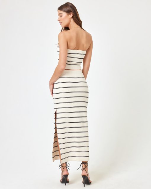 This high-waisted, body-hugging midi skirt is giving old money energy. The Amalfi Skirt is quite the chameleon — it can be worn low on the hips or pulled up higher. Pair it with the matching tube top for a set that is sure to bring in all the compliments. Midi Skirt Fitted Slit At Thigh Stretch Fabric Can Be Worn High Waist Or Low Waist 100% Cotton Like all delicates, shape, color and fit are best preserved if hand washed in cold water. Lay flat to dry. Style # AMASK24