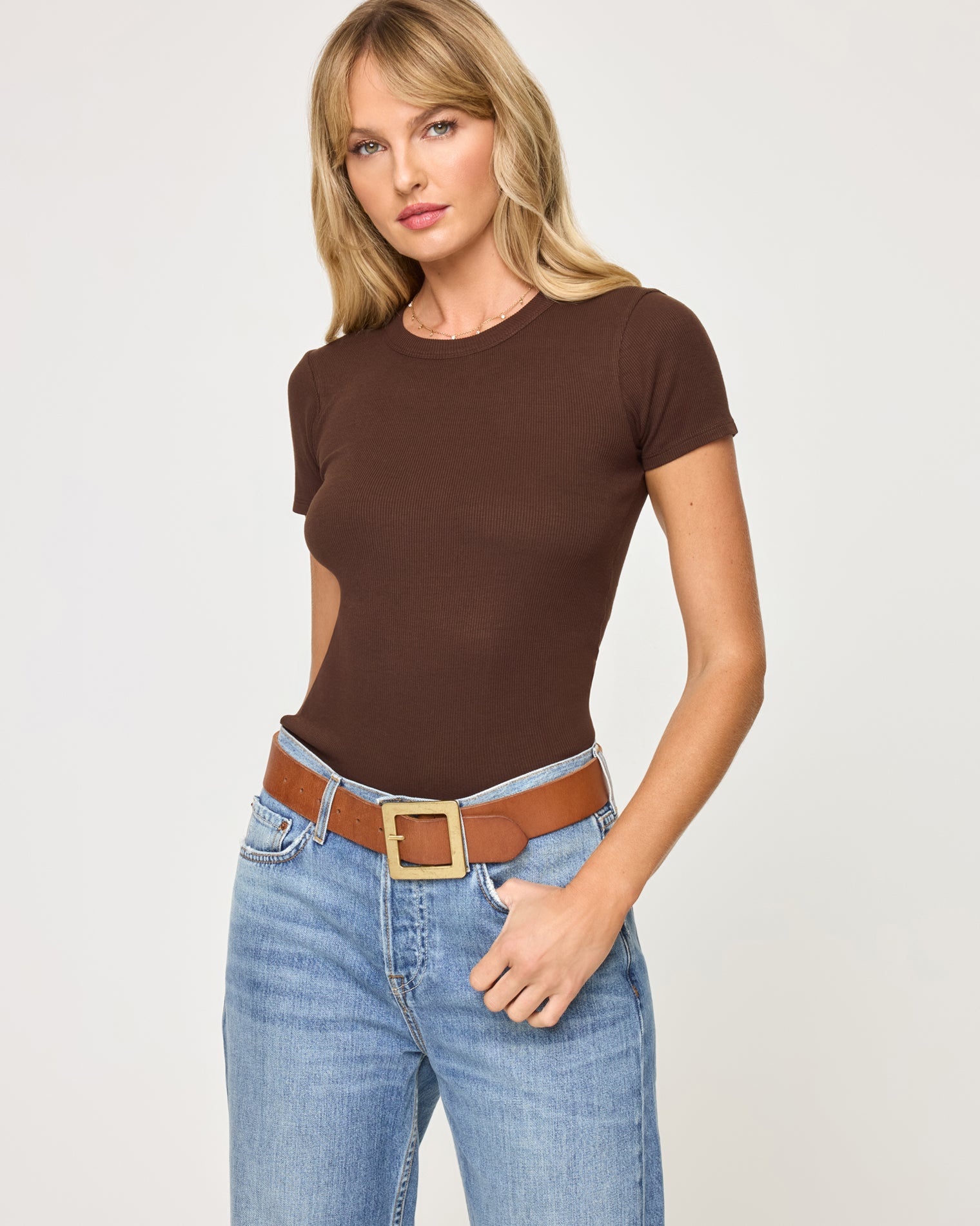Oh baby, baby! This baby t-shirt is serving up the 90s nostalgia. Made from our signature micro rib fabric, the Be My Baby Tee is a short sleeved cutie that you can add to your daily rotation of quality closet staples. Baby Tee Short Sleeve Ribbed Size XS-XL 95% Viscose 5% Elastane Style #BMBTP25