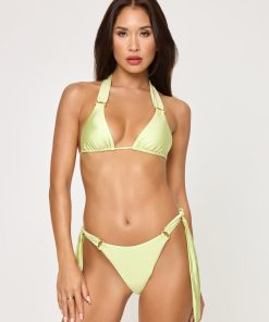 Ok, we all love a triangle top and we took it and made your favorite even better. The Brielle Bikini Top is an elongated triangle with thicker straps and metal D rings for some added sass. It ties at the neck and back and it’s now here in our whimsical mermaid-inspired shine fabric. Multiple Ways To Wear Elongated Triangle Top Halter Tie At Neck Tie At Back Metal D Rings Shine Fabric Size XS-XL, D, DD 80% Nylon/ 20% Spandex Style # LSBRT24
