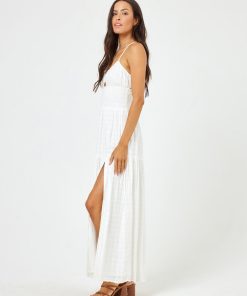 A smocked bodice and playful details will have the Calla dress in your weekly wardrobe rotation. This maxi also has a cute little front cut-out, adjustable tie back and side slit to show a little leg. She’s available in three pretty colors. Tiered Maxi Dress Leg Slit Adjustable Spaghetti Straps Criss Cross Back Cutout Under Bust Smocked Waist 95% Viscose 5% Elastane Like all delicates, shape, color and fit are best preserved if hand washed in cold water. Lay flat to dry. Style # CALDR24