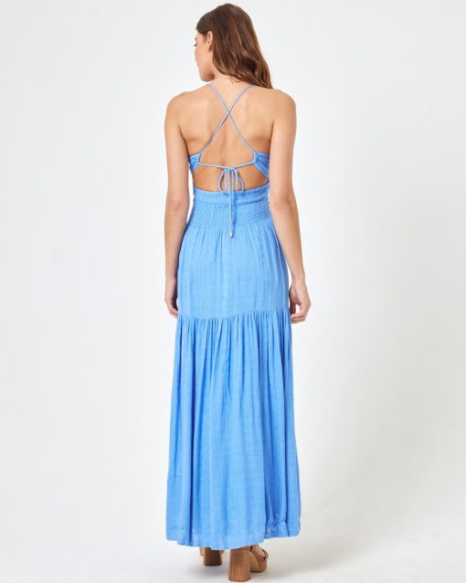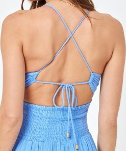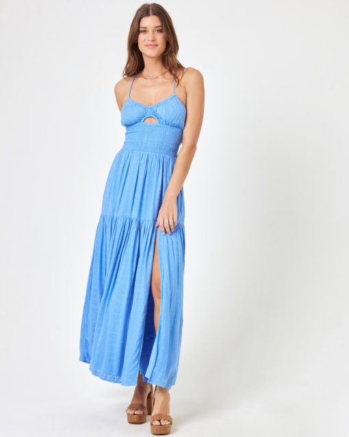 A smocked bodice and playful details will have the Calla dress in your weekly wardrobe rotation. This maxi also has a cute little front cut-out, adjustable tie back and side slit to show a little leg. She’s available in three pretty colors. Tiered Maxi Dress Leg Slit Adjustable Spaghetti Straps Criss Cross Back Cutout Under Bust Smocked Waist 95% Viscose 5% Elastane Like all delicates, shape, color and fit are best preserved if hand washed in cold water. Lay flat to dry. Style # CALDR24