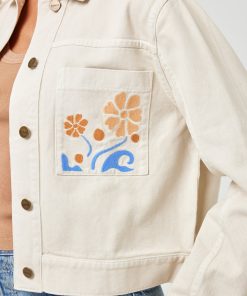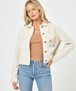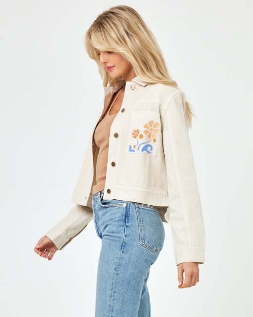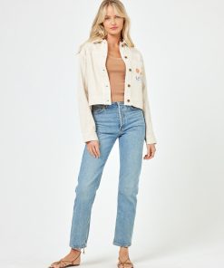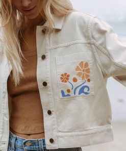 The cotton denim Capri Jacket is the perfect layering piece. Its cropped silhouette, LSPACE logo buttons, and detailed embroidery on the back and front pocket make this jacket a special piece for your closet. Wear it with a ribbed dress or your favorite pair of denim. Cropped Jacket Cotton Denim Button Down L Space Logo Buttons Buttons at Wrist Cuff Breast Pocket Embroidery Back Embroidery Size XS-XL 100% Cotton Like all delicates, shape, color and fit are best preserved if hand washed in cold water. Lay flat to dry. Style # CAPJA24 Model Measurements: Lura, size S – Height 5’9, Bust 32″, Waist 24″, Hips 34″