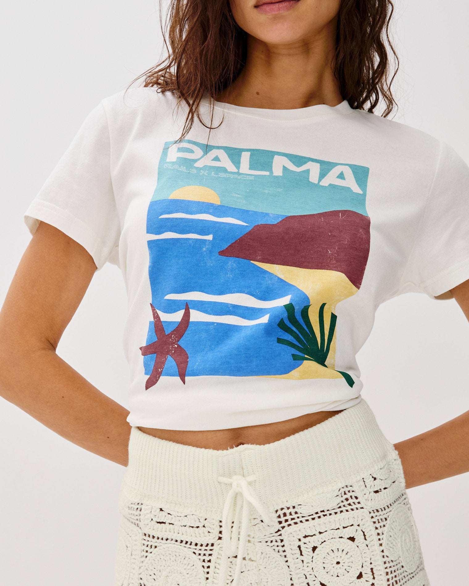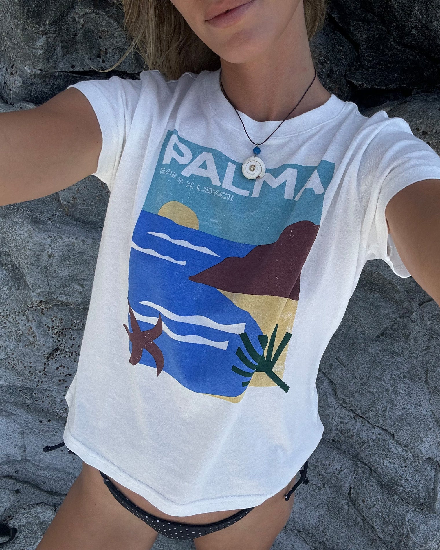 Transport yourself to the shores of Palma with this ultra-comfortable vintage cotton tee, featuring a classic fit and relaxed neckline. Front Body Length: 23 1/4″ Measured from Small 100% Cotton