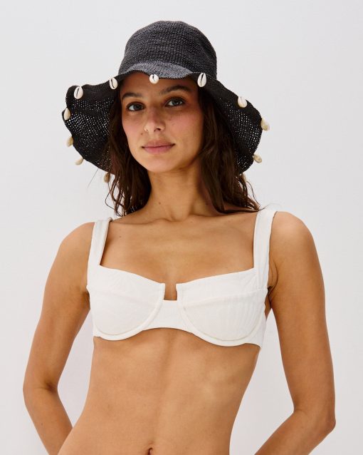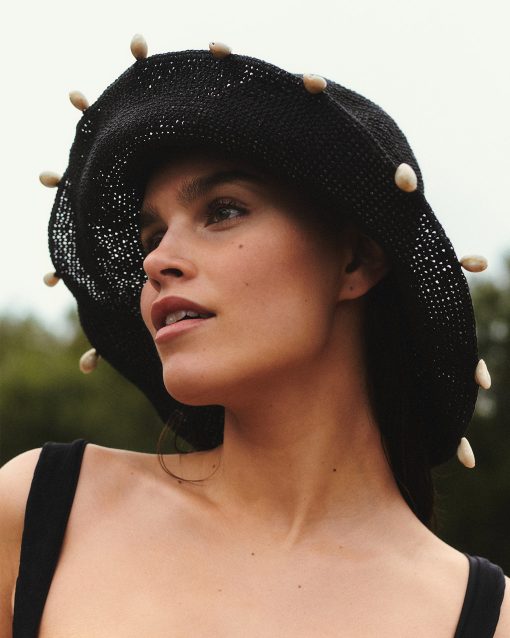 Life is just better in a bucket hat and we took things up a notch with the creation of the Crete. Part of the LSPACE x Rails collab, this cute topper is adorned with delicate seashells for a take on the coastal beach aesthetic. Take your pick from natural or black.