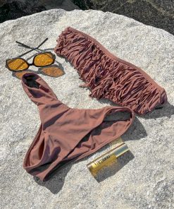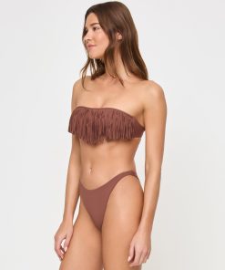 The Dixie Top is a strapless bandeau bringing sexy back thanks to its nostalgic fringe at the bust. You’ll be able to shimmy and shake in this iconic bikini that features removable pads and back tie. Bandeau Top Tie at back Fringe at bust Removable Padding Size XS-XL 82% Polyester | 18% Spandex Style # LSDIT25