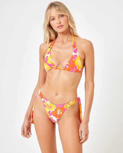 You’re going to go crazy for the KiKi! Get ready to soak up all the compliments when you wear them. These tanga bikini bottoms offer minimal coverage so you can show off those buns! Side ties, metal D rings and a mid-rise complete the look. Be sure to add these to your swim stash in our juicy new tropical floral, eco-friendly print called “Bliss and Blossom.” Side Tie Tanga Coverage Mid Rise Printed Bottom Metal D Rings Size XS-XL 82% Regenerated/ Nylon 18% Spandex Style # LSKIG24PE