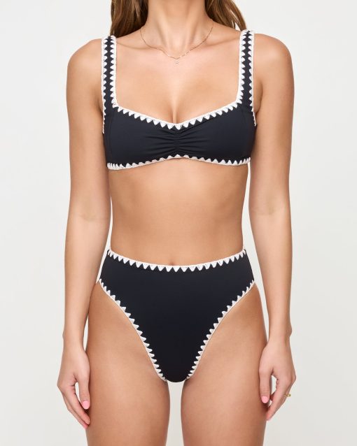 The Effie Top is a fun new bralette with eye-catching whip stitching. With wide straps, medium support and coverage, a shirred front and a cute little cut-out at the back this bikini top is doing the most. Mix and match it with any of the bottoms from this capsule. BraletteShirred FrontWide StrapsCutout At BackRemovable Pads XS-XL 80% Nylon, 20% Spandex