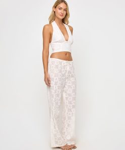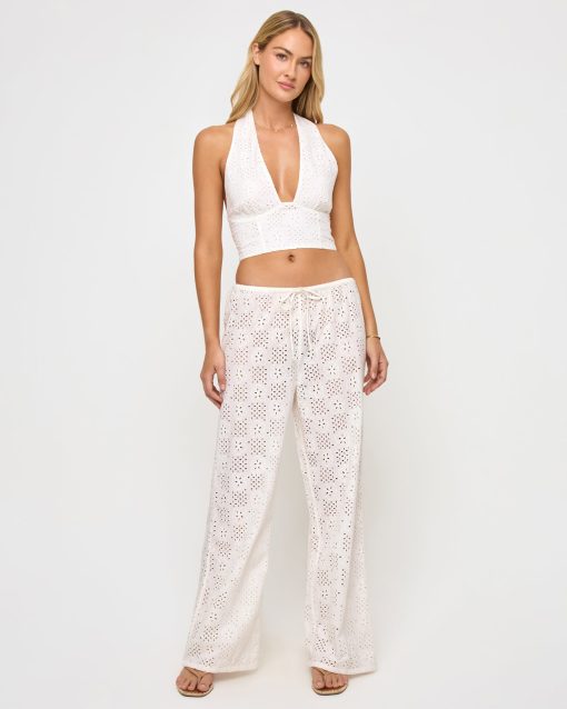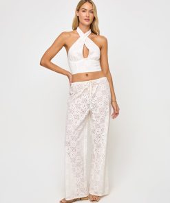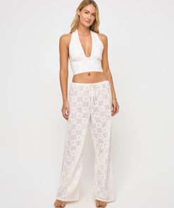 A halter top combines with detailed eyelet fabric to create the In Bloom Halter Top. This crop top nailed the The coquette aesthetic thanks to its smocked back, generous back ties for the perfect bow and floral pattern adorned throughout. Smocked BackTies At Neck XS-XL 100% Cotton