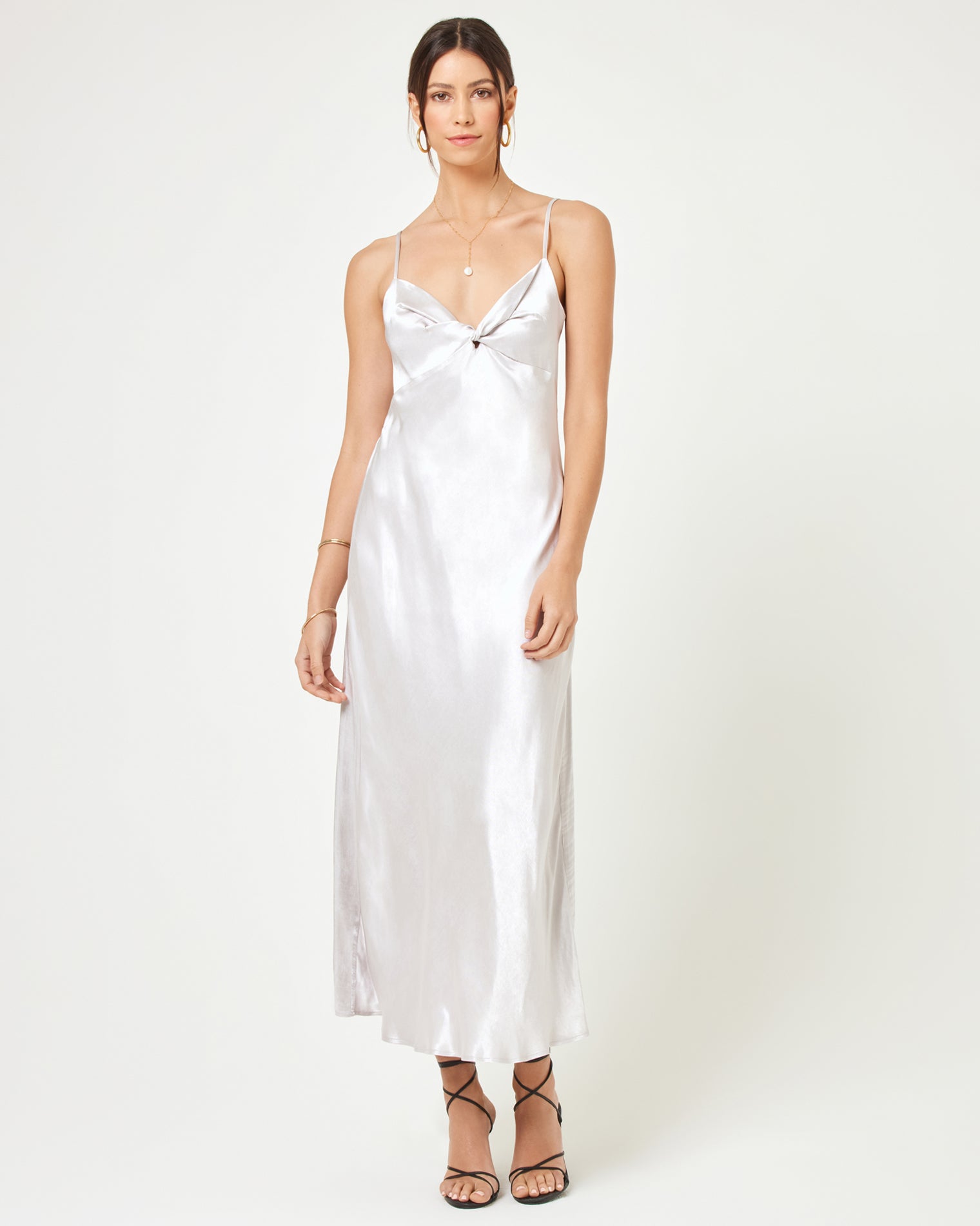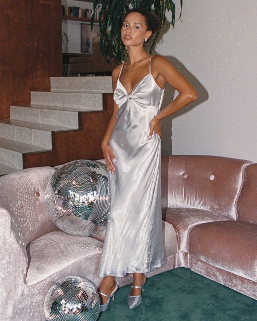 Work event, drinks with the girls or a date night….The Joanna Dress passes the vibe check. This satin midi (ankle length) has a festive twist-front with keyhole cut-out. Top it off with our Crystal Cardigan when things cool down. Spaghetti Strap Midi Length Adjustable Straps Shine On Satin Twist and keyhole at center front Empire seam at under-bust Spaghetti straps Size XS-XL 100% Viscose Style # JOADR25 Model Measurements: Kristen, size S – Height 5’9.5”, Bust 30, Waist 24, Hips 35.5