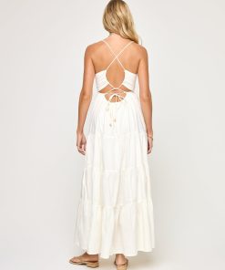 The Laina is a maxi that just hits different. From its generous tiered skirt to adjustable straps that criss-cross in the back, you’ll always feel your best in this cotton poplin number. Spaghetti strap Criss cross back Adjustable tie at back Tiered dress V neck Cotton Poplin 100% Cotton Style # LAIDR25