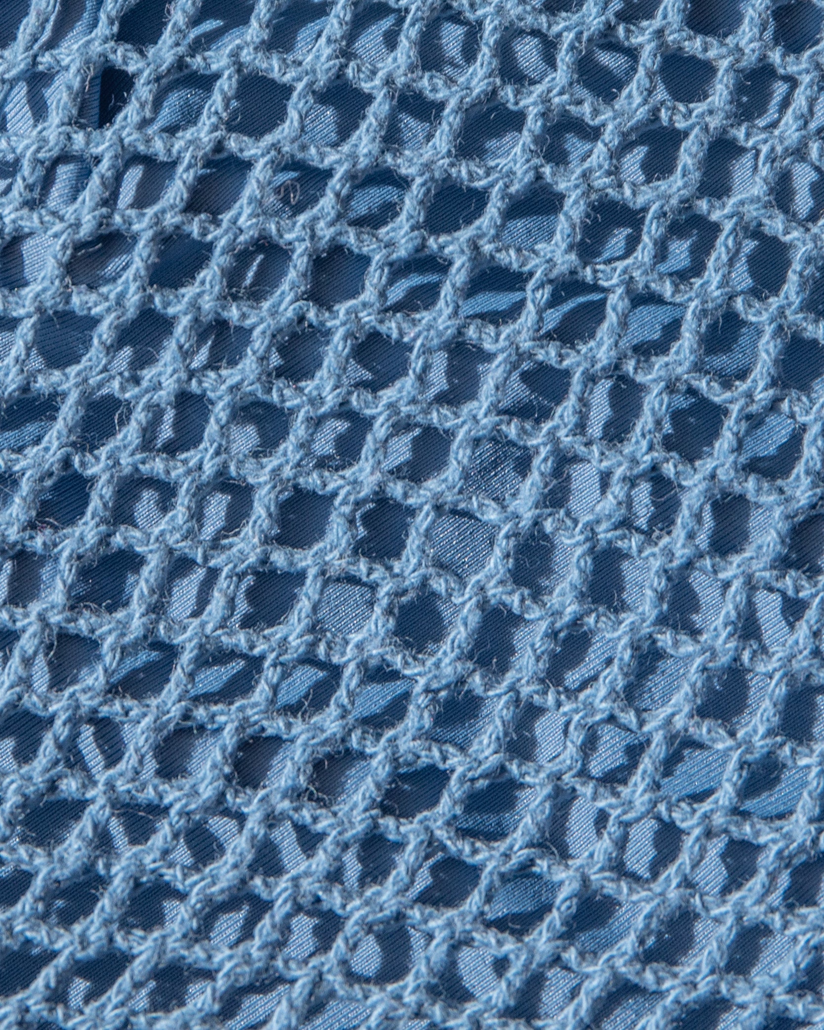 Get tied up in the Levy Bikini Bottom — this bestseller is now here with our new ocean-inspired blue colorway. Bitsy coverage and fun little side ties combine for a fresh take on a signature fit.Bitsy coverage Mid rise High leg Tie side Crochet net overlay 100% Cotton