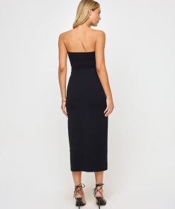 Everyone needs a little black dress in their repertoire and the Lisette checks all the boxes. Our iconic ribbed material makes up this strapless midi that features a cute little twist at the front. Rubber at the bust ensures things don’t slip and slide while you’re having all the fun. StraplessTwist FrontMidi LengthRubber At Bust XS-XL 90% Viscose, 10% Elastane
