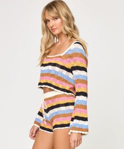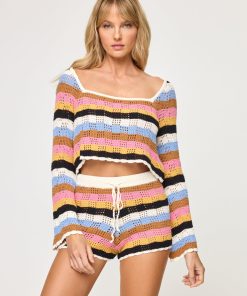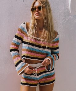 Is it possible to have too many matching crochet sets? Asking for a friend. The Lost Tides Top is a gorgeous statement piece complete with long bell sleeves, a square neckline and scalloped hem. Pair this colorful crop with the complementary shorts for a pulled-together look that will leave an impression.Long sleeve Bell sleeve Square neckline scallop hem Maldives cotton crochet 100% Cotton
