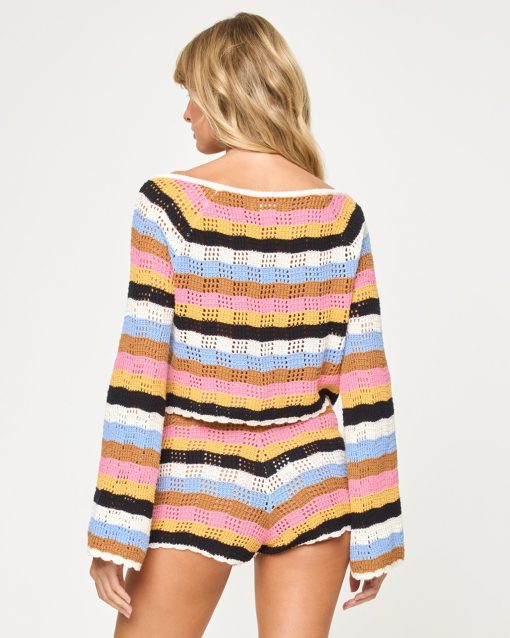 Is it possible to have too many matching crochet sets? Asking for a friend. The Lost Tides Top is a gorgeous statement piece complete with long bell sleeves, a square neckline and scalloped hem. Pair this colorful crop with the complementary shorts for a pulled-together look that will leave an impression.Long sleeve Bell sleeve Square neckline scallop hem Maldives cotton crochet 100% Cotton