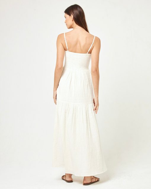 You’re going to look smokin’ hot in this smocked bodice masterpiece. The Mallorca Dress is a maxi that really is doing the most. Thin spaghetti straps and a one-tier skirt let this one move with you. Full Length Dress Adjustable Straps Smocked Bodice Tiered Skirt Size XS-XL 100% Cotton Like all delicates, shape, color and fit are best preserved if hand washed in cold water. Lay flat to dry. Style # MALDR24