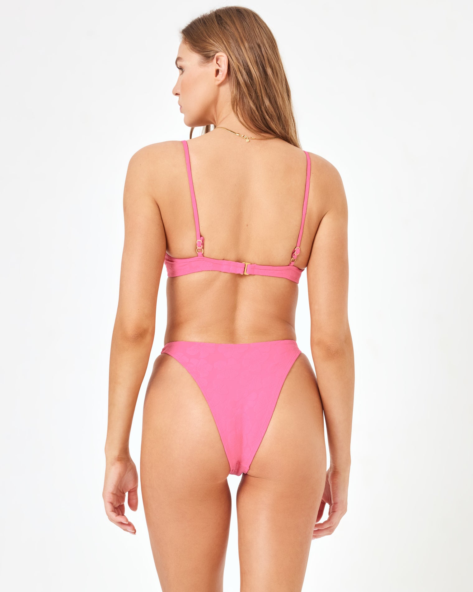 Life’s better in a bikini and this couldn’t be more true than when it comes to the Missy Bikini Top. An underwire silhouette & demi cup add some allure. Pair this with any of the coordinating bikini bottoms for a beach-ready look. Be sure to add it to your swim stash in our new hibiscus jacquard texture! Underwire Top Demi Cup Hook At Back Adjustable Straps Sweet Hibiscus Texture Size XS-XL 95% Nylon 5% Spandex Style # HBMIT24