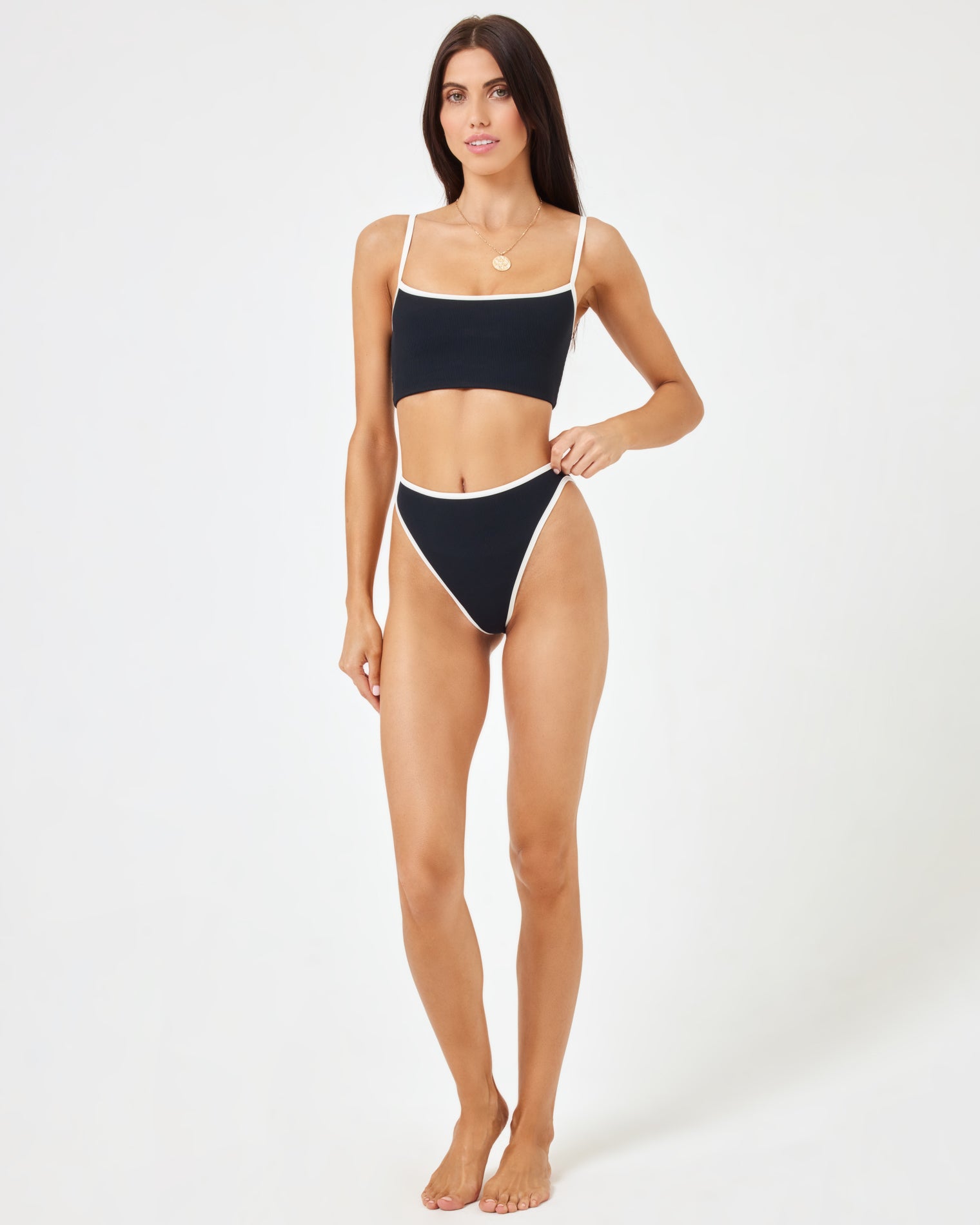 Take it up a tad with the Nora Bikini Bottom. With its contrast binding, this bitsy bottom sits high on the waist and cuts high on the leg for a season long flattering look.High leg High Waist Contrast binding, Contrast binding Size XS-XL 80% NYLON, 20% SPANDEX Unsure of your size? No worries! We recommend sizing up in our swim to get that perfect, feel-good fit. Style # RHNRB23