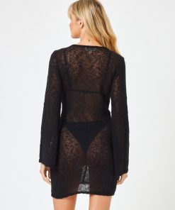 Mini Dress Long Bell Sleeve Deep V Twist Front Sandy Toes Sweater Knit Size XS-XL 100% Acrylic Style # PALCV24