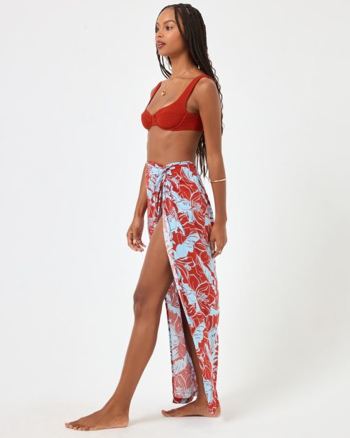 The classic sarong gets an upgrade with the Mia Cover-Up. Easy to wear and undeniably fun, this cover-up features an elastic waist and mock knotting detail.Light weight cover-up Elastic on back waist Size XS-XL Fabric Content: 100% viscose Like all delicates, shape, color and fit are best preserved if hand washed in cold water. Lay flat to dry.