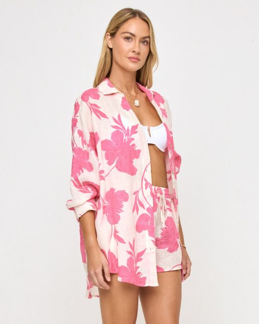 These linen pull-on shorts are the epitome of classic style and they’re now available in our fun new animal print. An adjustable tie waist and pockets are just a few of the reasons we keep reaching for these closet staples. Pair them with the matching button-down tunic for a cute set that’s perfect for the beach or brunch. This style runs small, we recommend sizing up. Linen Pull on Shorts Adjustable Tie Waist Side Pockets 100% Linen Style # RIOSH23