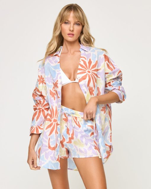 Tailored, refined details pair up with an oversize silhouette to make your new favorite shirt. The Rio Tunic is an essential part of any capsule wardrobe. Wear it as a set with the matching shorts or pop it over your bikini for a quick cover-up. Button Down Collared Shirt Cuffs With Buttons Oversized Relax Fit Size XS/S, M/L, XL 100% Linen Style # RIOTU23