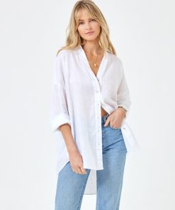 Tailored, refined details pair up with an oversize silhouette to make your new favorite shirt. The Rio Tunic is an essential part of any capsule wardrobe. Wear it as a set with the matching shorts or pop it over your bikini for a quick cover-up. Button Down Collared Shirt Cuffs With Buttons Oversized Relax Fit Size XS/S, M/L, XL 100% Linen Style # RIOTU23