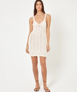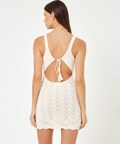 The Saffron Cover-Up Dress fuses texture and detail to create one of our most memorable minis. The soft sweater knit is the stand-out and a v-front, tie in the back and scalloped edges add some interest. Sweater Knit Mini V Front Tie At Back Scalloped Edge Size XS-XL 80% Viscose, 17% Nylon, 3% Spandex Style # SAFCV25