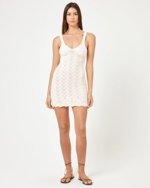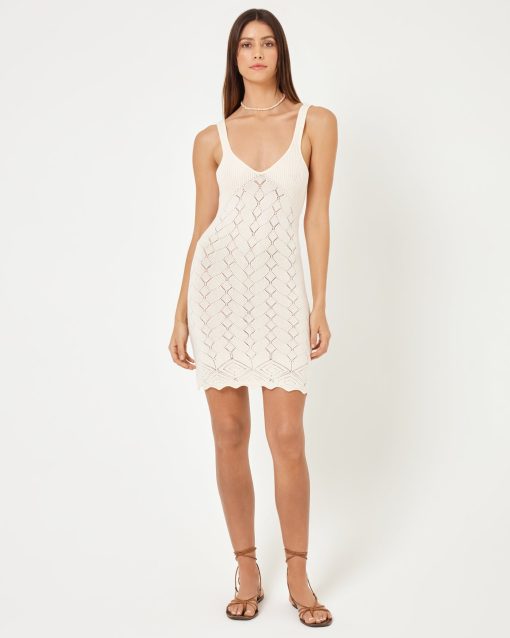 The Saffron Cover-Up Dress fuses texture and detail to create one of our most memorable minis. The soft sweater knit is the stand-out and a v-front, tie in the back and scalloped edges add some interest. Sweater Knit Mini V Front Tie At Back Scalloped Edge Size XS-XL 80% Viscose, 17% Nylon, 3% Spandex Style # SAFCV25