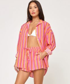 There’s nothing better than a wardrobe workhorse that you can wear multiple ways. The Santa Cruz does all the things and more. This oversized button-down collared shirt has pockets at the breast, button cuffs, and it’s made from a new striped printed poplin fabric. Wear it with the matching Skipper Shorts and you’ll be ready to lounge or get things done — your call.Button down collared shirt Cuffs with buttons, Oversized relaxed fit Pockets at breast Printed poplin Size XS/S, M/L, XL 100% Cotton Style # SANTU25