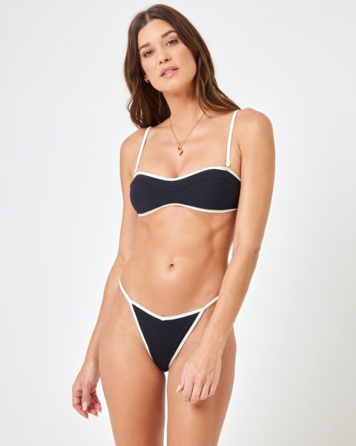 Alright, the Selena is super sexy, plus you basically get two bikini tops in one thanks to the removable straps (thanks girl math.) This bandeau has a hook at the back, contrast color blocking and the straps can be adjusted should you choose to wear them! Beandeau Top Removable Slider Straps Hook At Back Removable Pads Colorblock Binding Riding High Rib Size XS-XL 92% Nylon/8% Spandex Like all delicates, shape, color and fit are best preserved if hand washed in cold water. Lay flat to dry. Style # RHSET24 Coverage: Classic Model Measurements: Maitlynn, size S – Height 5’9, Bust 34″, Waist 24″, Hips 35″