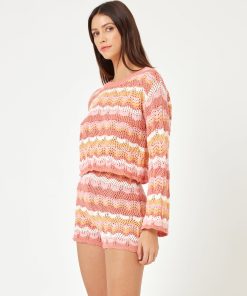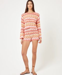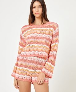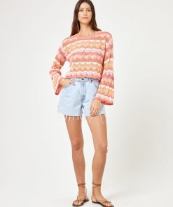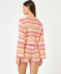 This knitwear is ready for the sunny season with its bright colors + crop top style. The crochet Sun Ray Sweater is breathable for those warmer days.Cropped Sweater Scoop Neck Long Sleeve Crochet 100% Cotton Like all delicates, shape, color and fit are best preserved if hand washed in cold water. Lay flat to dry. Style # SURSW23