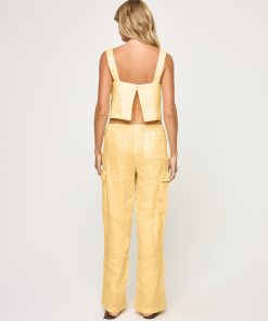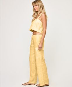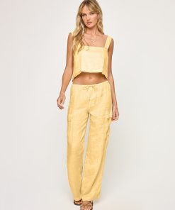 We love the cargo trend so much that we made our own! The Sundown Cargo Pants are showing up with style thanks to their mid rise, tie waist and generous wide leg. We didn’t skimp on the pockets either. Wear them with your fave t-shirt or with the matching top for a complete set. Cargo Pant Pockets at Thigh Pocket on Butt Mid or High Rise Tie Waist Relaxed Leg Size XS-XL 100% Linen Style # SUNPA24