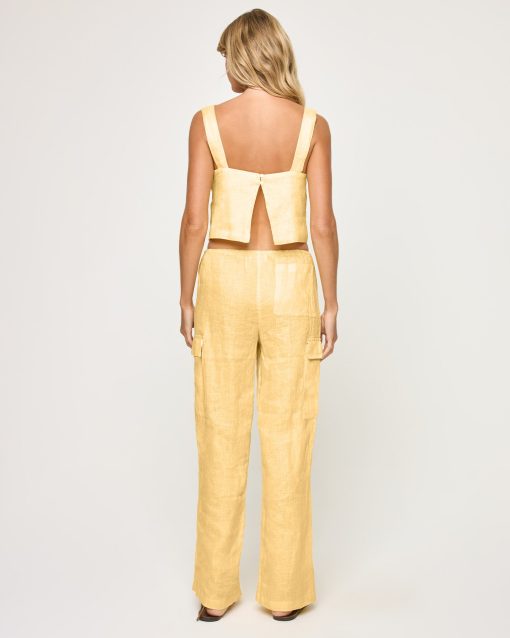 We love the cargo trend so much that we made our own! The Sundown Cargo Pants are showing up with style thanks to their mid rise, tie waist and generous wide leg. We didn’t skimp on the pockets either. Wear them with your fave t-shirt or with the matching top for a complete set. Cargo Pant Pockets at Thigh Pocket on Butt Mid or High Rise Tie Waist Relaxed Leg Size XS-XL 100% Linen Style # SUNPA24