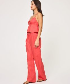 We love the cargo trend so much that we made our own! The Sundown Cargo Pants are showing up with style thanks to their mid rise, tie waist and generous wide leg. We didn’t skimp on the pockets either. Wear them with your fave t-shirt or with the matching top for a complete set. Cargo Pant Pockets at Thigh Pocket on Butt Mid or High Rise Tie Waist Relaxed Leg Size XS-XL 100% Linen Style # SUNPA24