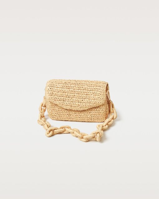 The Sunrise Bag will have you going places. The sturdy chain link strap is stunning and can be removed, converting a shoulder style to a clutch. This paper raffia flap purse is also big enough to hold your essentials such as keys, small wallet and phone. Paper Raffia Shoulder Bag Paper Raffia Wrap Chain Loop Strap Material: Paper Raffia Style #LSSUN25