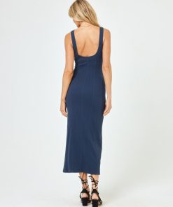 With seams that mimic boning and our thick, cotton micro rib material, the Vivienne Dress is a special piece to add to your closet. You’ll feel your best in this fitted midi dress that also comes complete with a scoop neck, low back and leg slit. Scoop Neck Tank Straps Princess Seaming Low Back Size XS-XL 95% Cotton 5% Spandex Style # VIVDR24