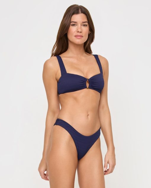 Look poised, polished and pretty in the Willow Bikini Top. This bralette style top has a centerpiece ring detail, extra-thick shoulder straps for a super comfy fit and our new crinkle fabric. BraletteWide StrapsOval Ring DetailRemovable Pads D, DD XS-XL 99% Nylon, 1% Spandex