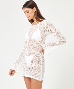Feminine and flirty, the Arrow Cover-Up Dress works for a beach day or a special brunch. This mini dress has long bell sleeves, a low back and classy boat neckline. Add some lace-up sandals and you’re good to go. Long Sleeve Mini Dress Boat Neckline Low Back JVS Collaboration Size XS-XL 100% Rayon Like all delicates, shape, color and fit are best preserved if hand washed in cold water. Lay flat to dry. Style # ARRCV24